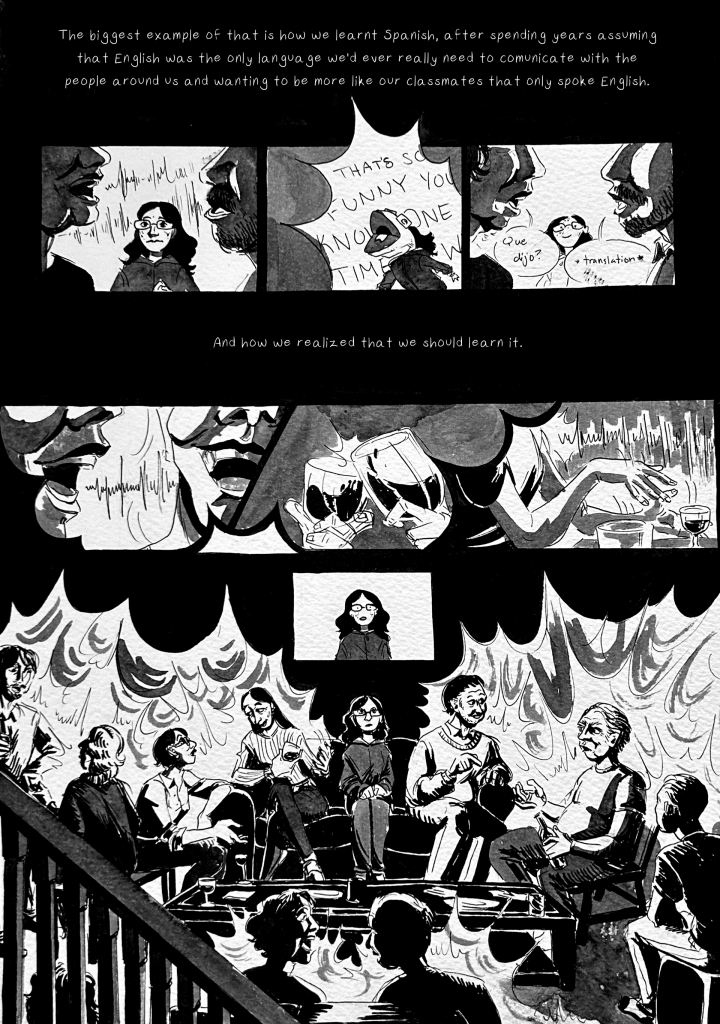 12 page Autobiographical comic based on my brother and I’s experience growing up together and our different approaches to learning Spanish.